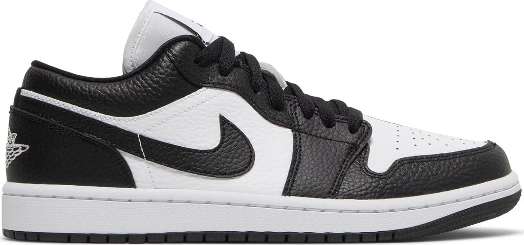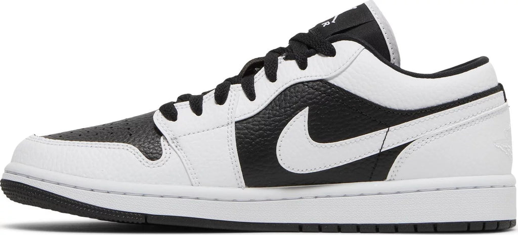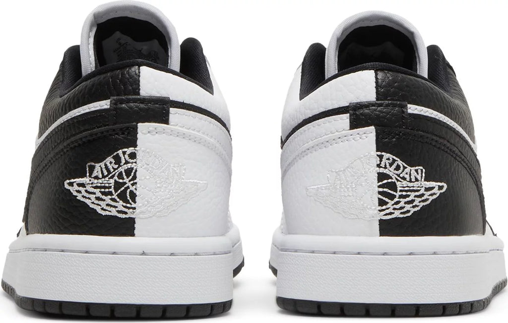 O Air Jordan 1 Low SE 'Homage' apresenta um bloco de cores dividido que lembra o Air Jordan 1 High 'Homage to Home' de 2018. O cabedal de couro caído em cada sapato apresenta uma base branca com sobreposições pretas contrastantes na lateral e uma base preta com sobreposições brancas no lado medial. O tema da divisão se estende à etiqueta da língua Jumpman e ao logotipo Wings bordado no calcanhar. Ambos os sapatos são montados em uma sola de borracha, destacada por paredes laterais brancas e uma sola de borracha preta.